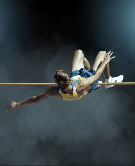 Een schitterende foto van een hoogtesprong. Het gaat hier vooral om techniek, sprongkracht en gevoel voor timing (gekoppeld aan coördinatie)